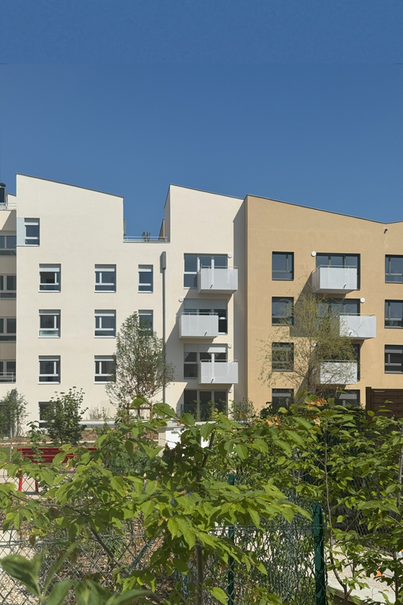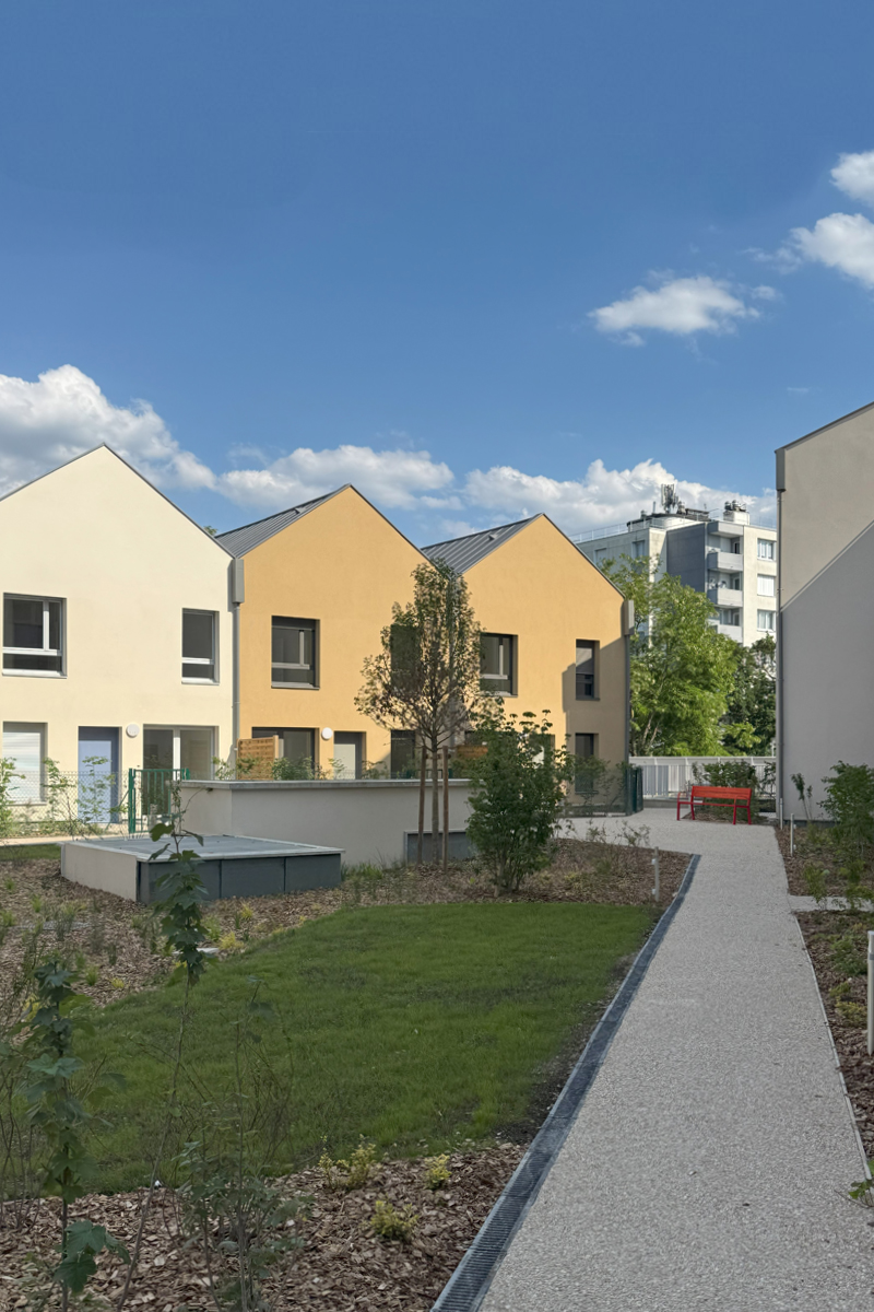 Le jeu des couleurs d’enduits et des matériaux de façade, l’attention portée aux toitures, le travail volumétrique contemporain, l’ancrage au sol … tous ces éléments sont des outils dont nous nous accaparons afin d’inscrire le projet dans le futur quartier.